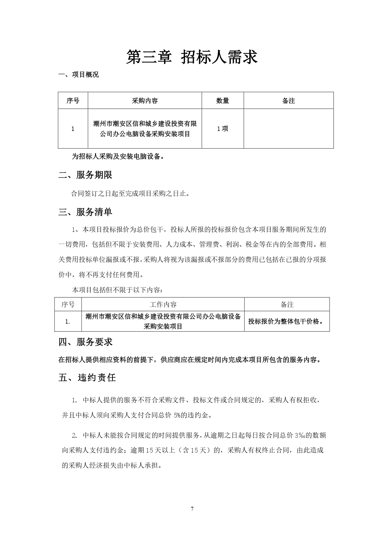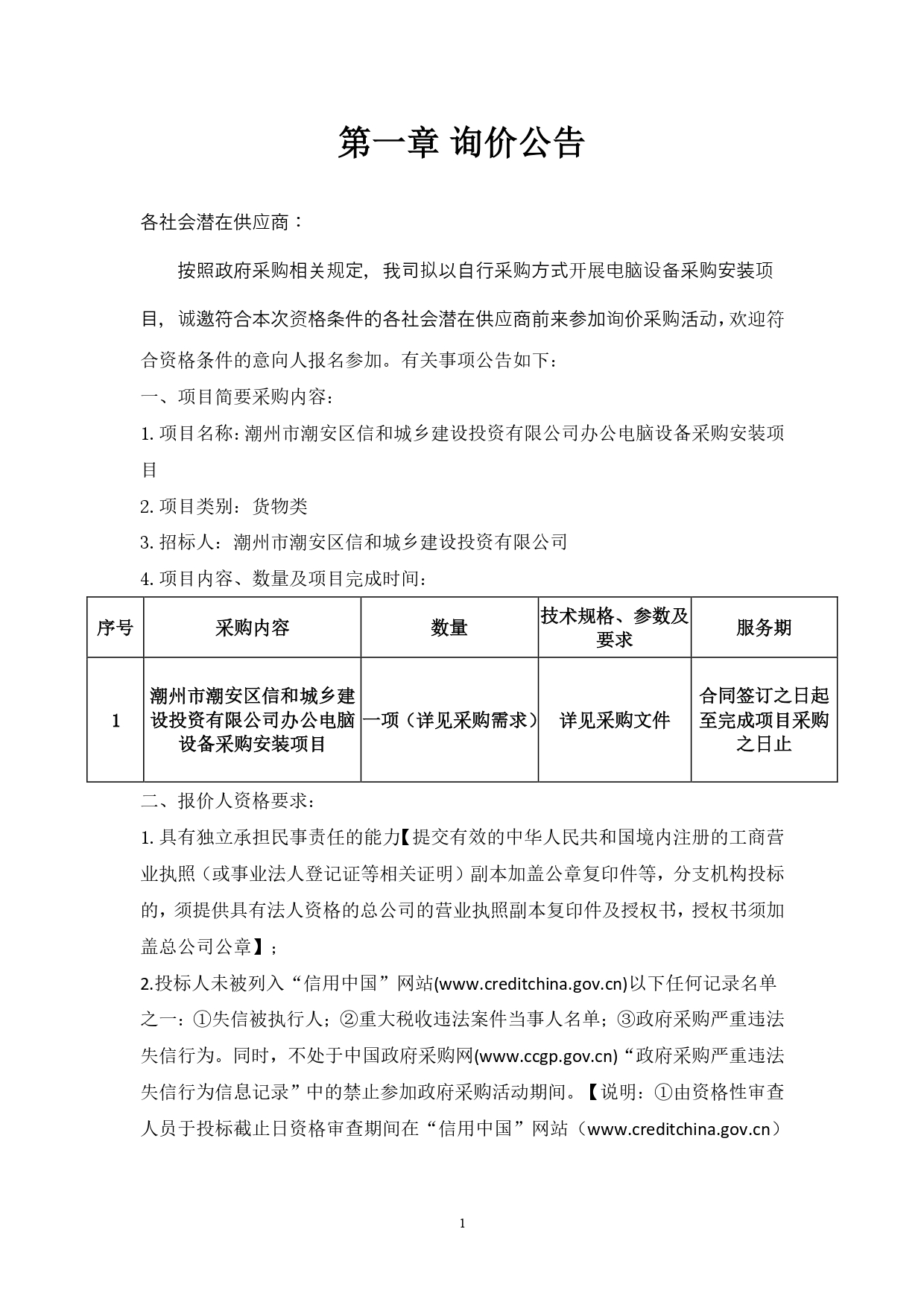 潮州市潮安区信和城乡建设投资有限公司办公电脑设备采购安装项目