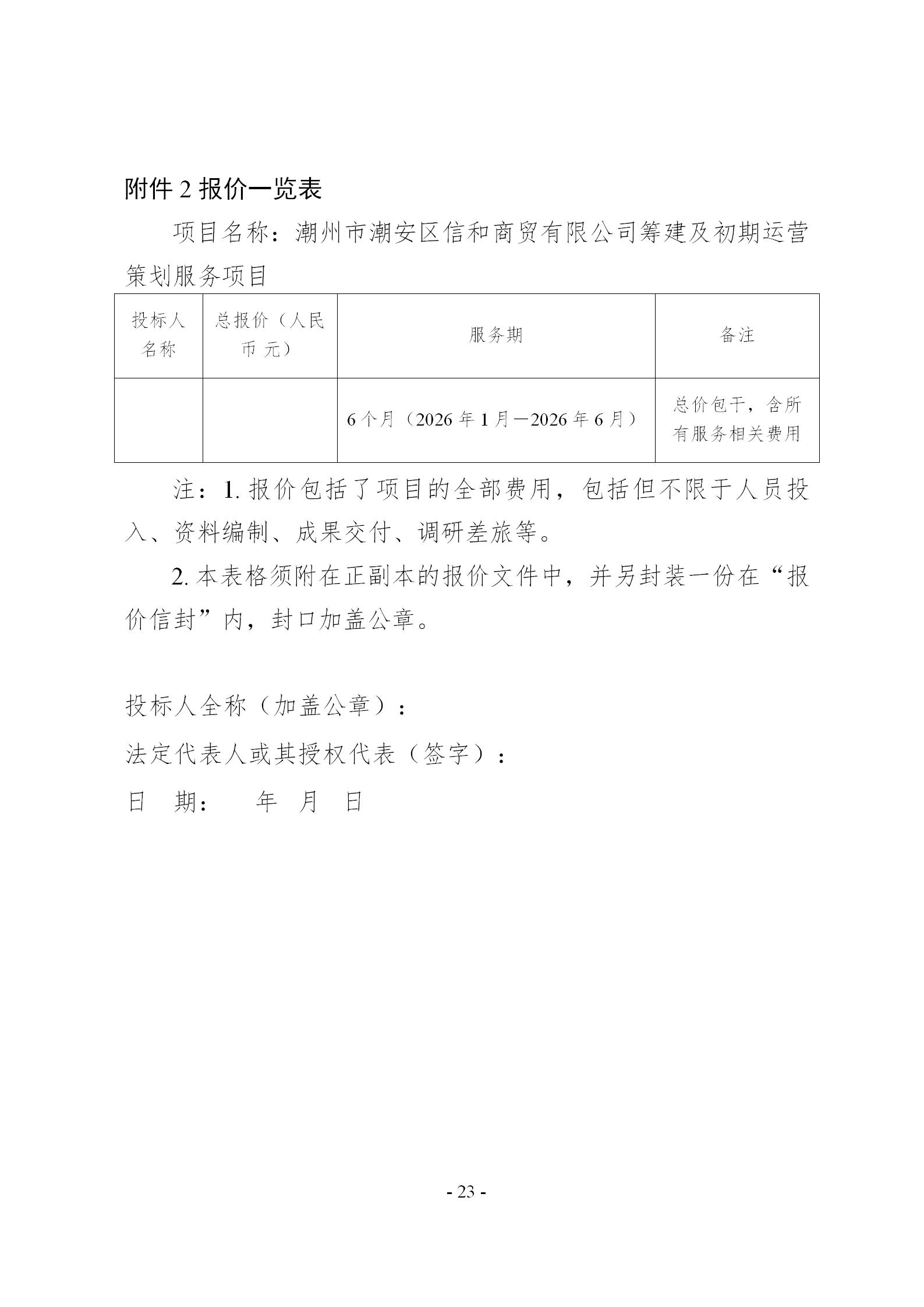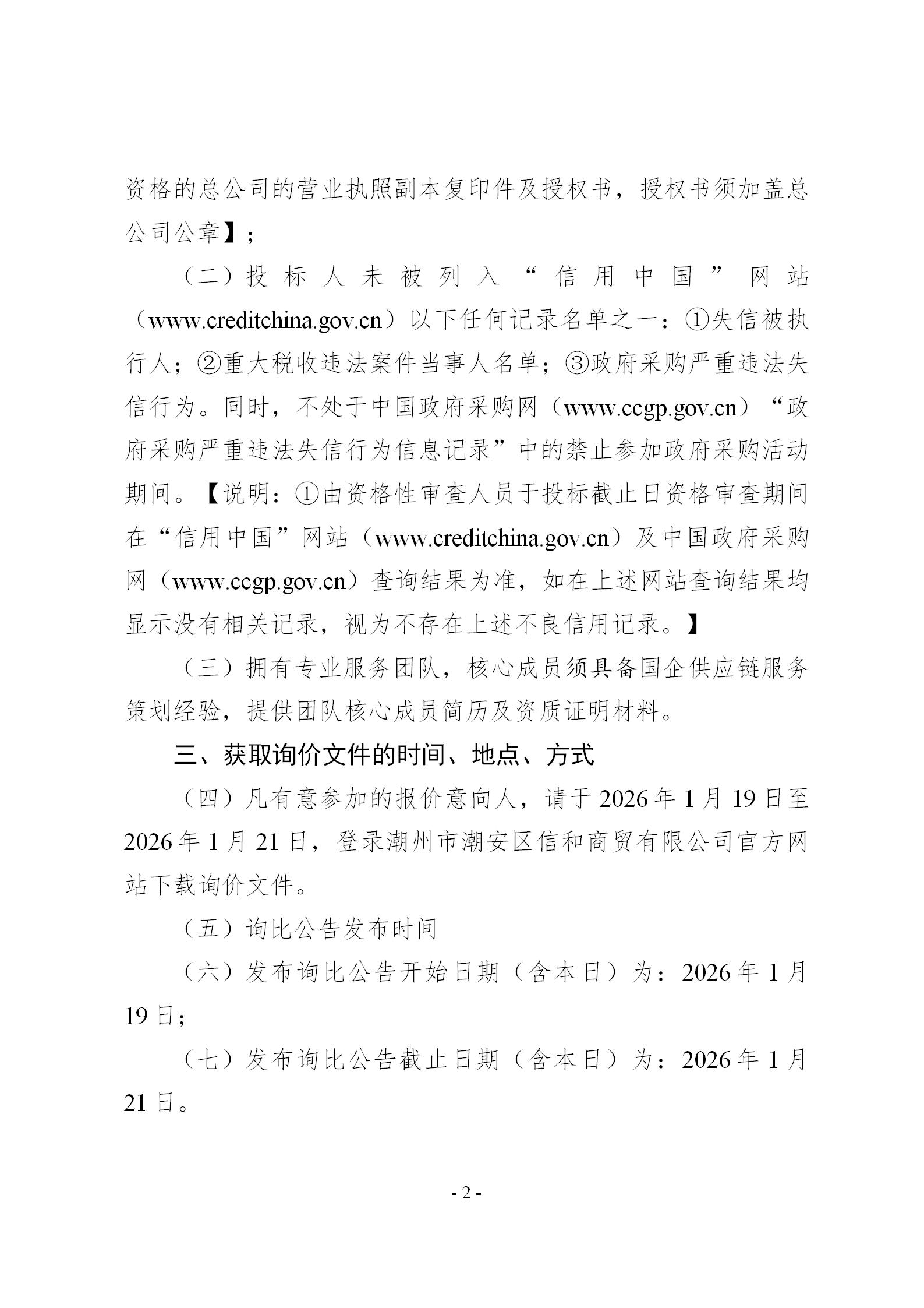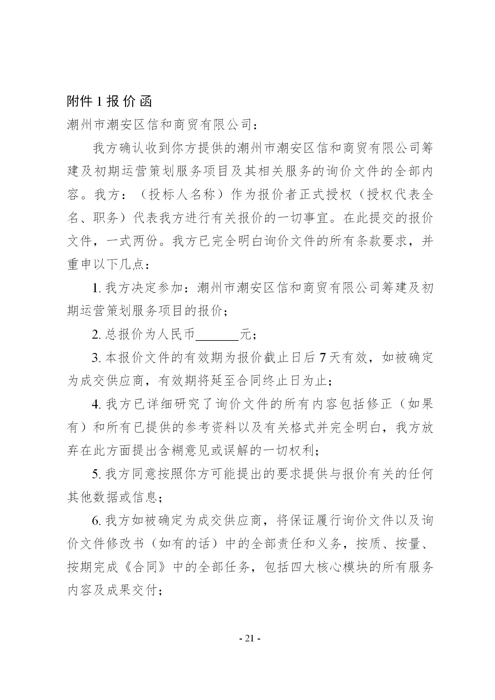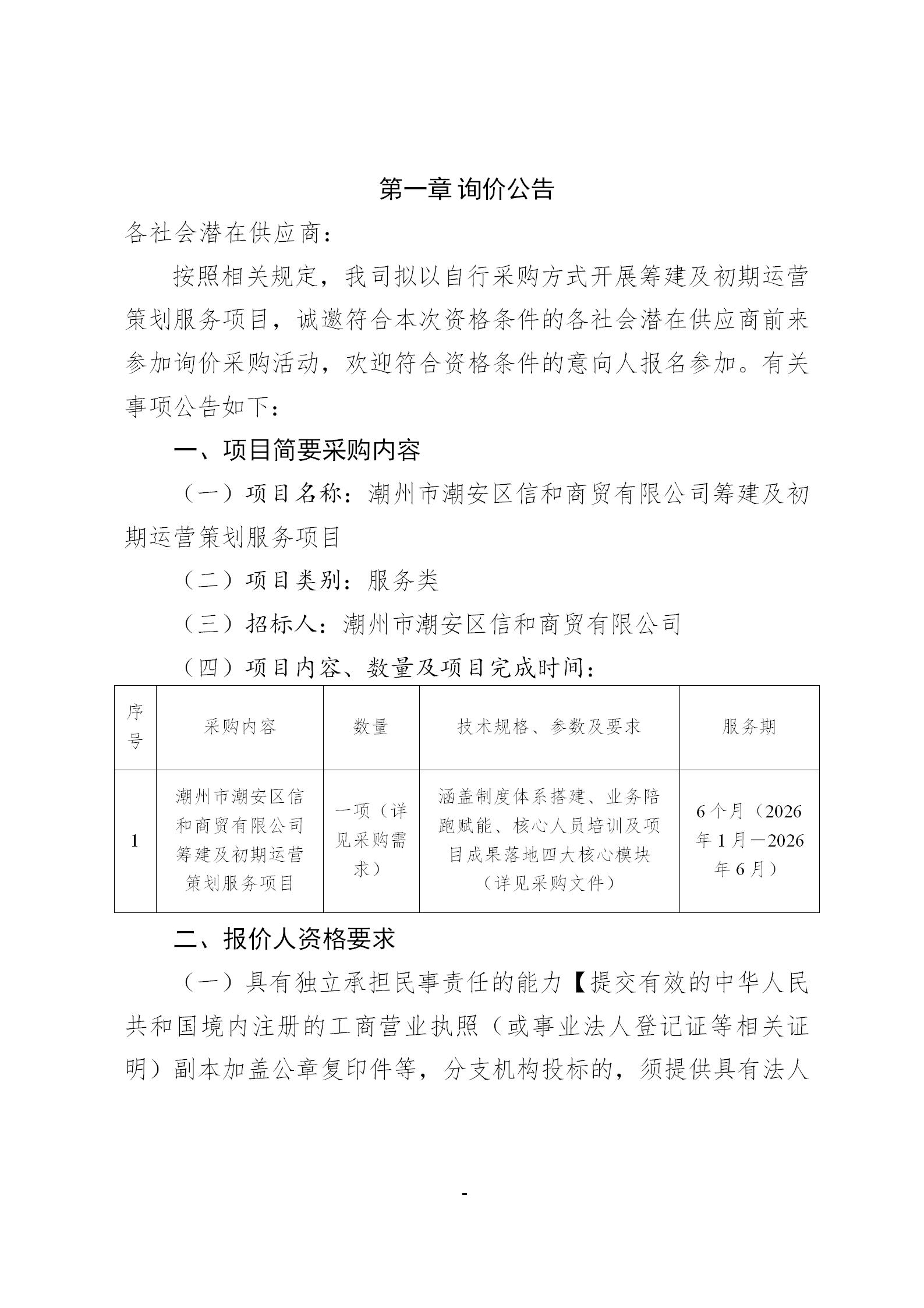 潮州市潮安区信和商贸有限公司筹建及初期运营策划服务项目询价文件