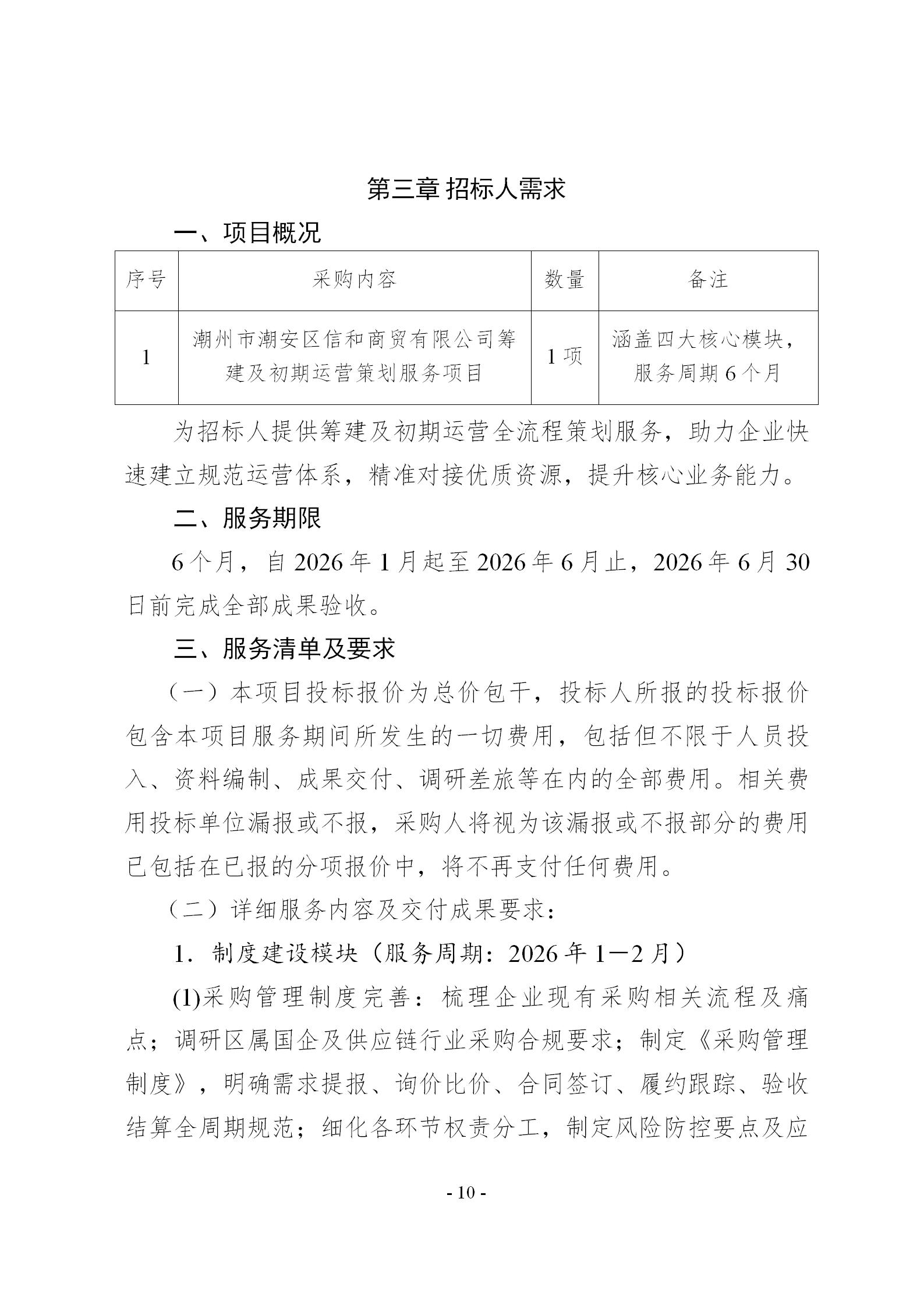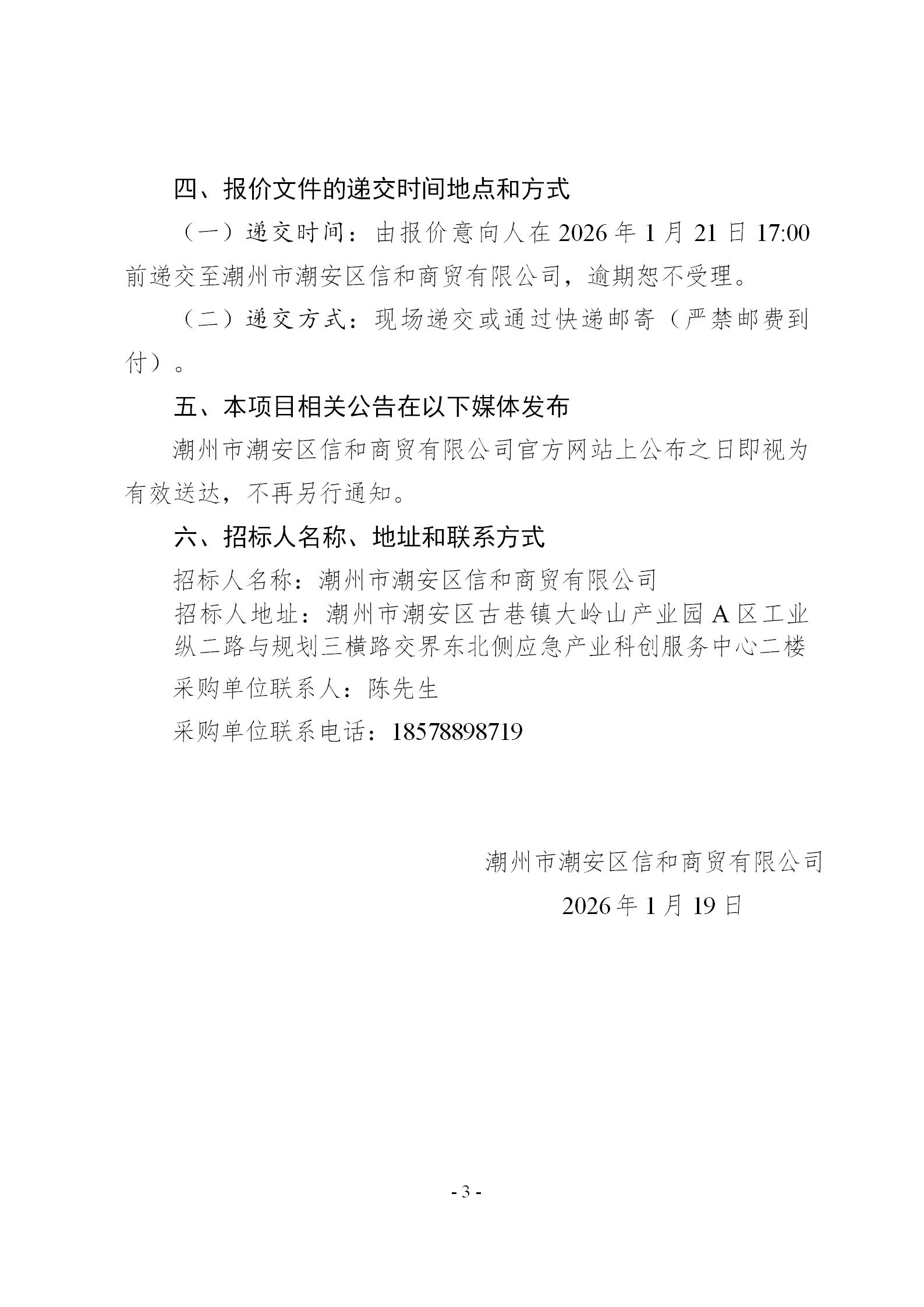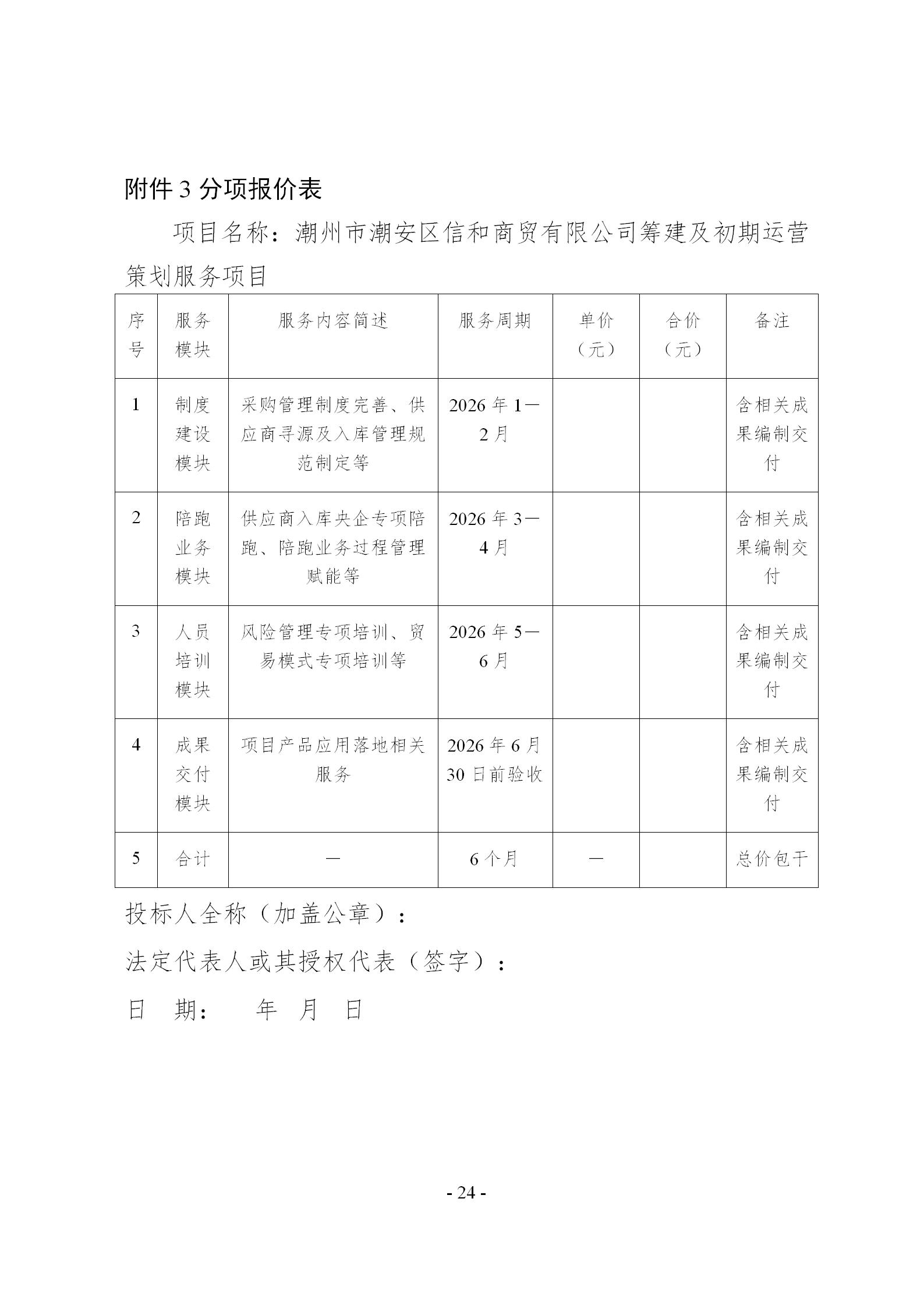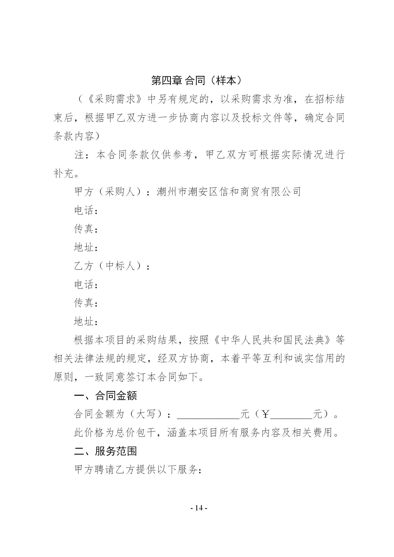 潮州市潮安区信和商贸有限公司筹建及初期运营策划服务项目询价文件